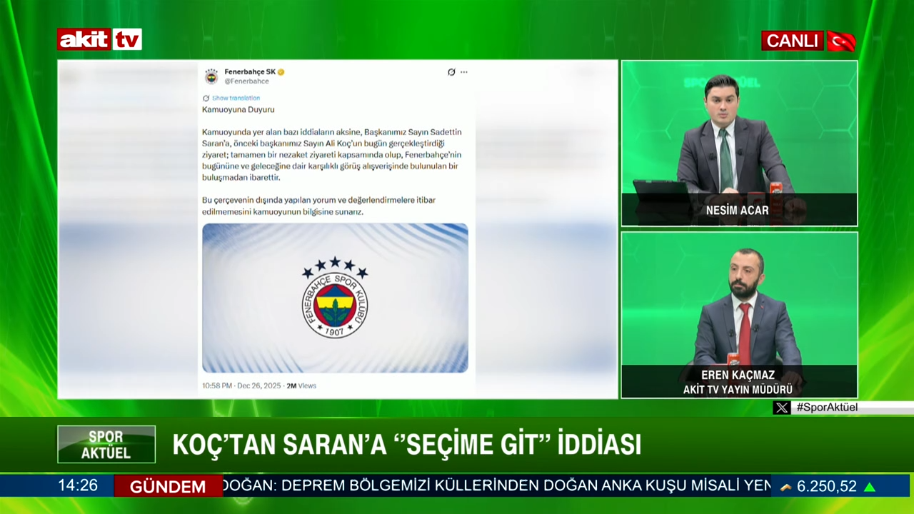 Spor Aktüel Nesim Acar/Eren Kaçmaz "Koç'tan Saran'a seçime git iddiası" 27.12.2025