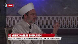 Kadir Gecesi programı düzenlenen Ayasofya, ezan sesi ile yankılandı.