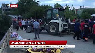 İlkokul öğrencilerini taşıyan midibüs kanala uçtu: 14 ölü 26 yaralı.