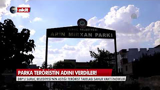 DBP'li Suruç Belediyesi'nin astığı terörist tabelası sahur vakti indirildi.